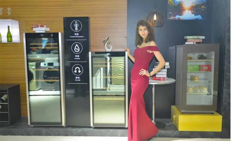 澳柯玛此次还展出了多款窖藏式酒柜,暗金色金属拉丝外框,金属弧形门框,高档尊贵尽显。澳柯玛红酒酒柜采用智能温控技术,自动调节柜内温度,内设感温头实现精确感温,冷气充分循环,有效减小箱内温差,使箱内各点温度波动最小,还可根据不同种类的红酒设定了不同的储藏温度,此外,抗紫外线技术的镀膜钢化玻璃,采用专利技术的电加热门体除露方式,确保最适宜的饮用和储存温度,可最大限度保证酒品色香味。