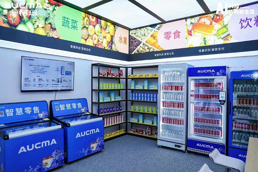 在新零售场景展区,澳柯玛现场搭建了一个智慧新零售超市,推出了卧式智能售卖柜、智能零售展示柜、智能售货柜、绩效监测展示柜等多款基于AI智能识别技术新品。在这个自助智能零售空间体验店,观众亲身体验到智能零售的魅力,切身感受了数字化、智能化带来的全新购物体验。